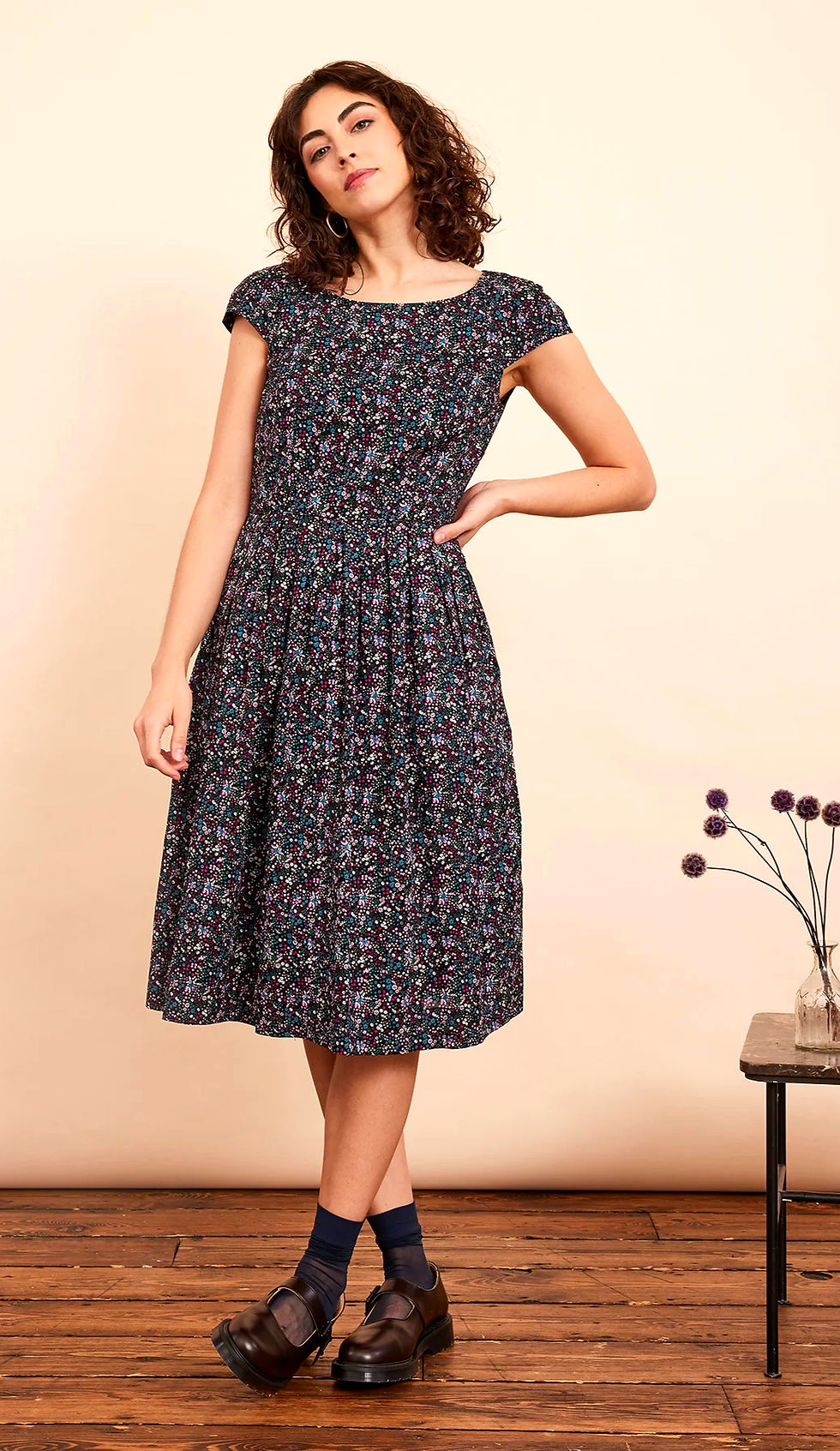Claudia midnight ditsy print dress